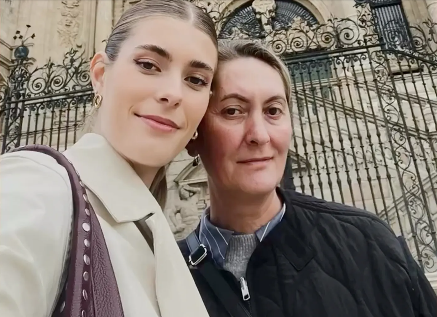 着名T台模特克里斯蒂娜·佩雷斯·加尔琴科和母亲。(酬酢平台截图)