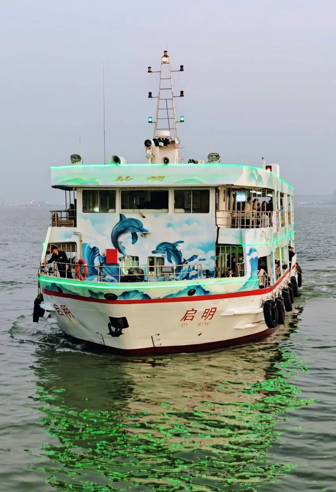 如今,穿梭在内海湾的“启明”号500客位船舶已成为“搬动水经济驿站”:主船面绘画北转头线秀美,成立“汕头小公园街区先容”“鸥遇汕头湾打卡图”等文化场景;二船面打造“海上树梦”“侨批邮筒”“蓝海豚”等多巴胺元素空间,客舱楼梯喷绘文旅图标,让乘客体验“一步一梯一故事”的文化之旅;25分钟的环线航程,则串联起礐石大桥、南滨公园等8处中枢景不雅,让“坐轮渡看夕阳”从交通活动变为水经济虚耗场景。